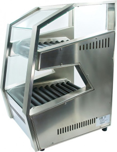 Двухуровневый роликовый гриль с тефлоновым покрытием роликов, 20 роликов (11 низ + 9 верх) с полезной шириной рабочей зоны 305 мм., с защитным экраном с подсветкой, с двумя независимыми зонами нагрева общей мощностью 1375 Вт. с раздельным двухмоторным приводом роликов и плавной раздельной регулировкой температуры до 200°C. Роликовый гриль для сосисок оснащен магнитными боковыми ограничителями для защиты от стекания жира по внутренним бортам. Качественная компонентная основа, терморегуляторы с тактильным ответом, корпус и ТЭНы из нержавеющей стали, и продуманная конструкция, обеспечат долгие годы службы роликового гриля на фудкорте, АЗС или в круглосуточном магазине.