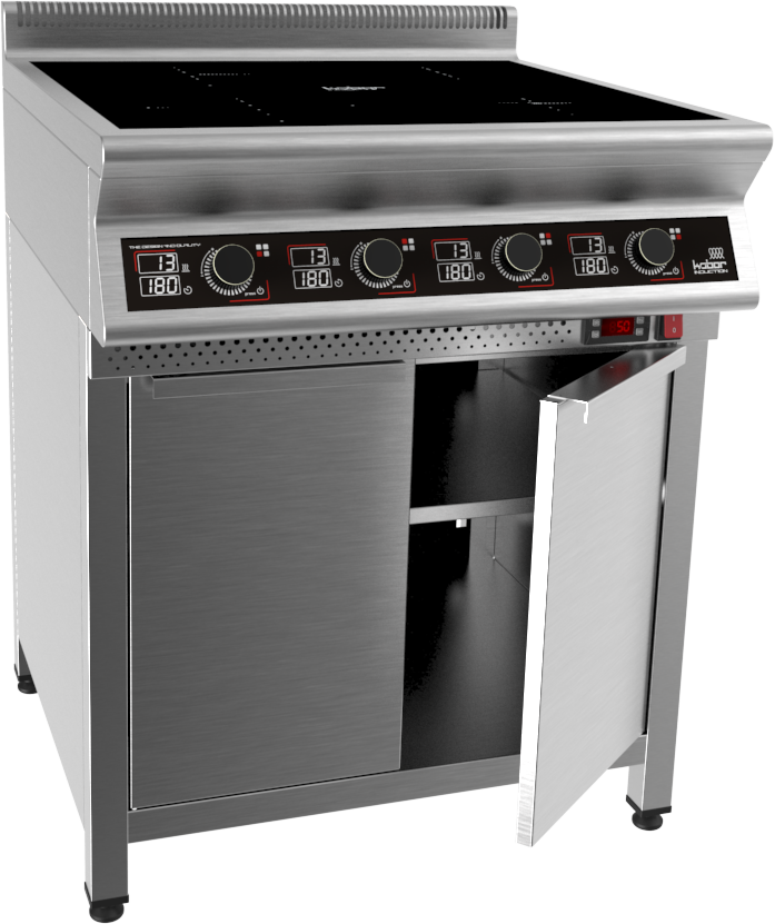 Плита индукционная на тепловой подставке, 4 конфорки мощностью 4х3,5кВт, электронная панель управления с цифровой индикацией, 13 уровней нагрева, таймер до 180мин., корпус плиты из н.с. AISI 304, рабочая поверхность - стеклокерамика 6мм, мощнось подставки 1,6кВт, перф. полка регулируемая по высоте, электронная реулировка температуры до 60°С, регулируемые по высоте ножки, 15,6кВт, 380В, вес 102 кг.