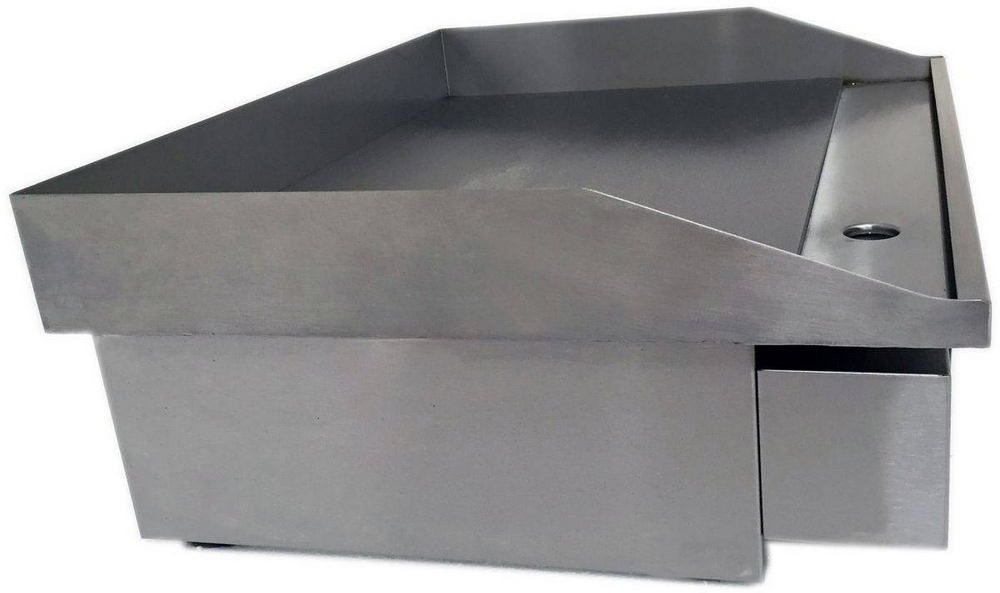 Корпус и жарочная поверхность выполнены из нержавеющей стали, что гарантирует долговечность и легкость в уходе. Дополнительно предусмотрен поддон для сбора жира, что упрощает процесс очистки.