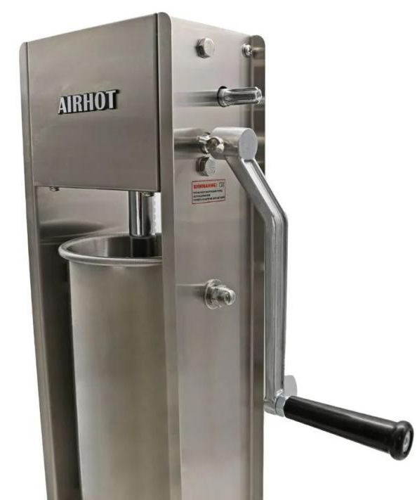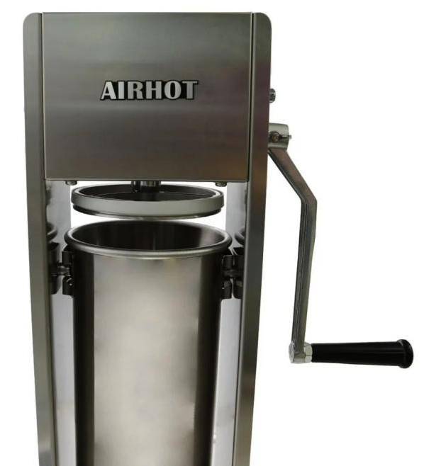 Шприц для колбас Airhot SV-5 представляет собой вертикальное устройство с объемом 5 литров, выполненное из высококачественной нержавеющей стали. Этот ручной аппарат идеально подходит для приготовления различных мясных изделий, таких как колбасы, сосиски и купаты. Он обеспечивает автоматическую набивку фарша в оболочку, будь то натуральная или искусственная.