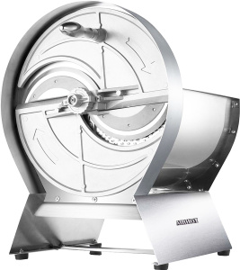 Изготовленный из нержавеющей стали, слайсер отличается прочностью и долговечностью, не подвержен коррозии и ржавчине, что делает его идеальным для использования в сфере общественного питания и торговли. Острое лезвие из высококачественного материала обеспечивает легкость в нарезке, позволяя обрабатывать продукты быстрее и эффективнее, чем при ручном способе.