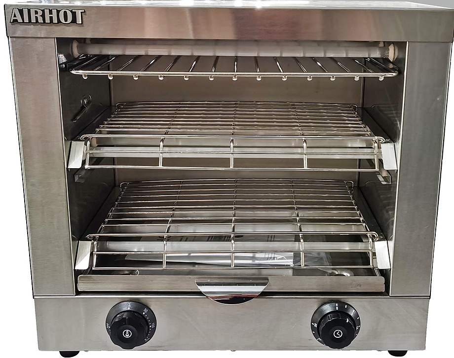 Тостер-саламандра Airhot HST-270 представляет собой идеальное решение для равномерного подогрева и обжаривания готовых блюд, таких как сэндвичи, бутерброды, хлебобулочные изделия и пицца, в кафе, ресторанах и других заведениях общественного питания. Эта модель обладает горизонтальной схемой загрузки и оснащена двумя переключателями для настройки температурного режима, а также таймером на 30 минут без функции автоматического отключения.