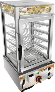 Витрина тепловая настольная Airhot HWS-4 предназначена для презентации различных кондитерских изделий, закусок и выпечки. С максимальной температурой до +110°C, она эффективно сохраняет свежесть и текстуру продуктов. Корпус выполнен из нержавеющей стали, а боковые стенки изготовлены из изоляционного стекла, что способствует удержанию тепла и влаги, одновременно обеспечивая привлекательный вид выставленных товаров. Витрина оснащена подсветкой для лучшей визуализации и терморегулятором для точной настройки температуры.